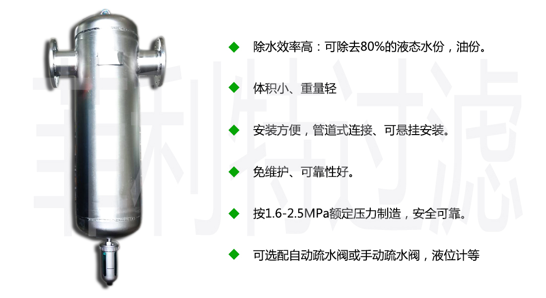 ◆ 空壓機(jī):空壓機(jī)配套使用氣水分離器應(yīng)用非常廣泛,可以選用濾芯式