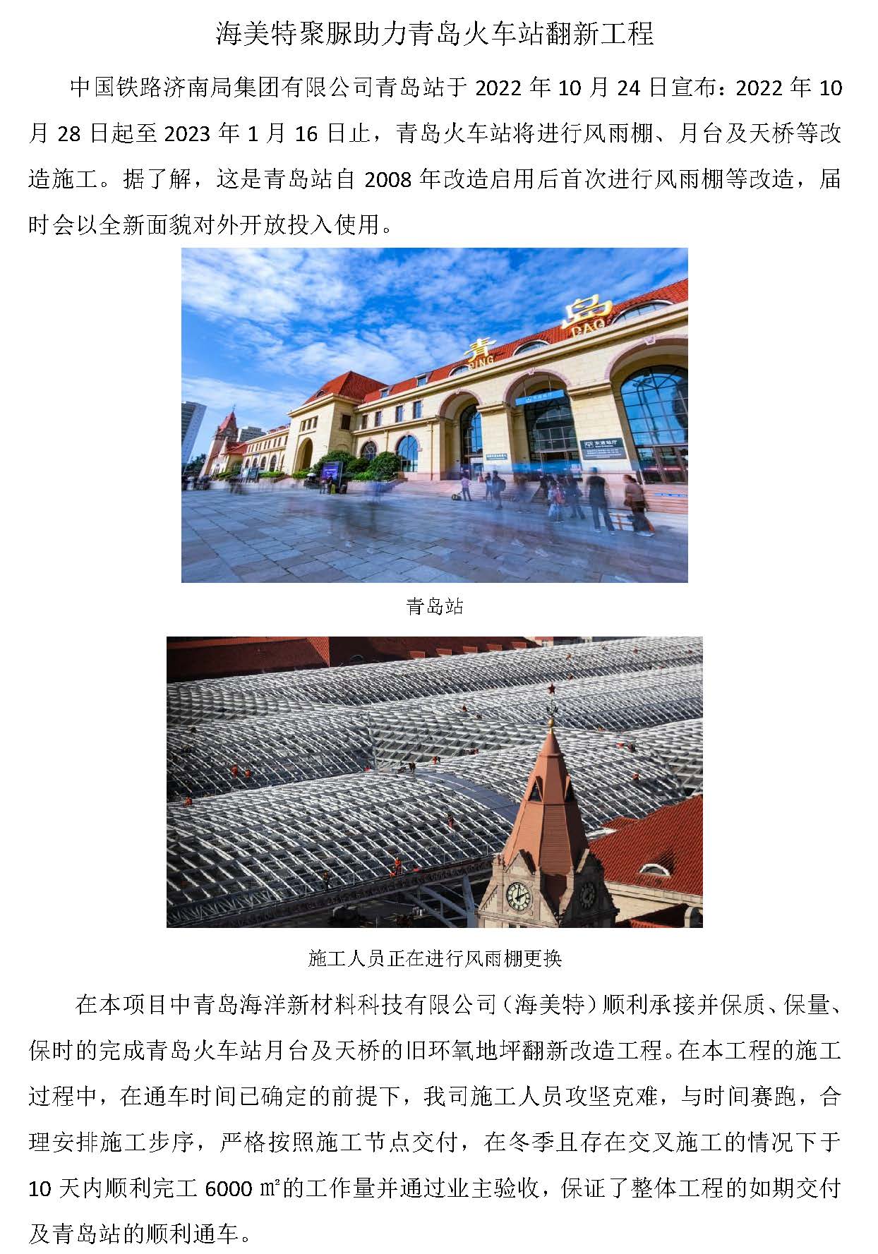 以“新”換“心”,青島海洋新材料助力青島站改造工程!