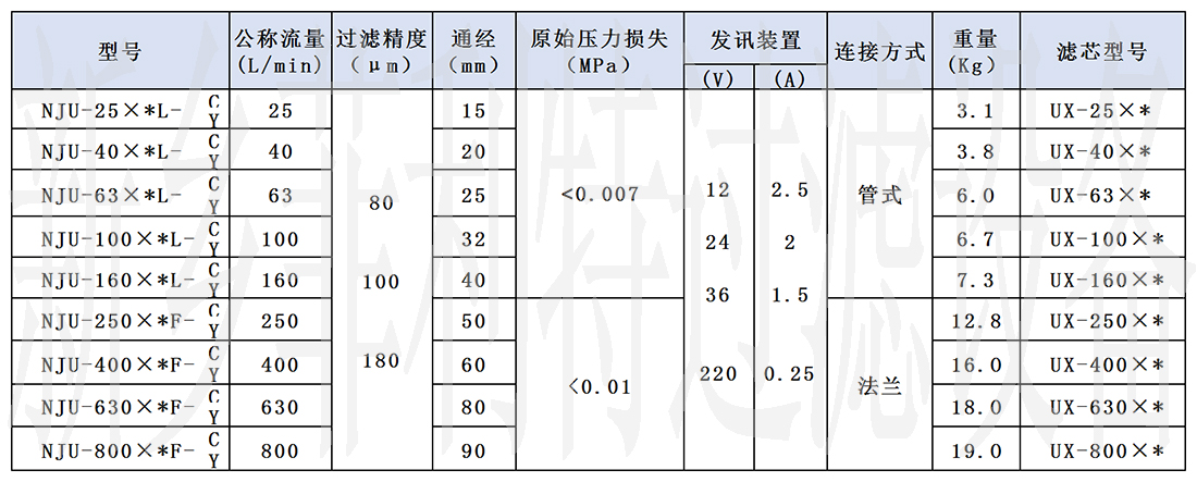 1、NJU-25~160型(對(duì)照表一) 2、NJU-250~800型(對(duì)照表二)