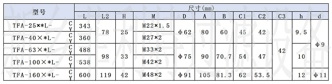 (五)、安裝尺寸 1、管式(出油口螺紋連接) 2、法蘭式(出油口法蘭連接) 表一、TFA-25~160螺紋式連接尺寸 表二、TFA-250~800法蘭式連接尺寸