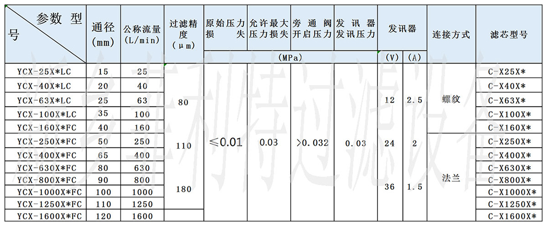 型號(hào):國(guó)標(biāo)YCX系列過濾器