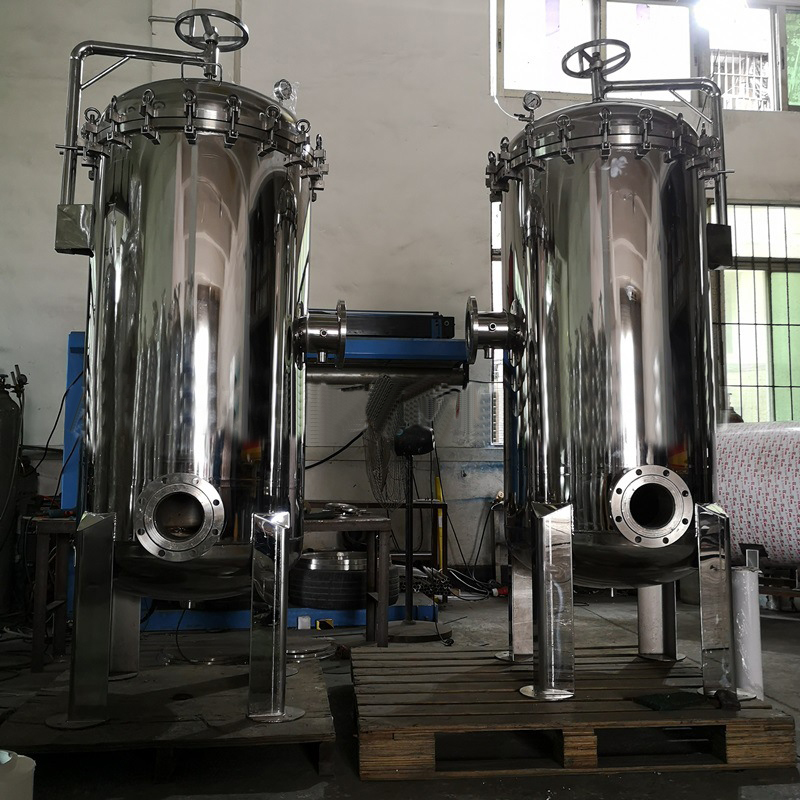 大流量保安過(guò)濾器 大流量保安過(guò)濾器主要用于超濾、反滲透預(yù)過(guò)濾、中水回用等類似用途。大流量保安過(guò)濾器與標(biāo)準(zhǔn)的63mm熔噴濾芯相比能夠大大降低投資成本。 每支大流量濾芯的處理