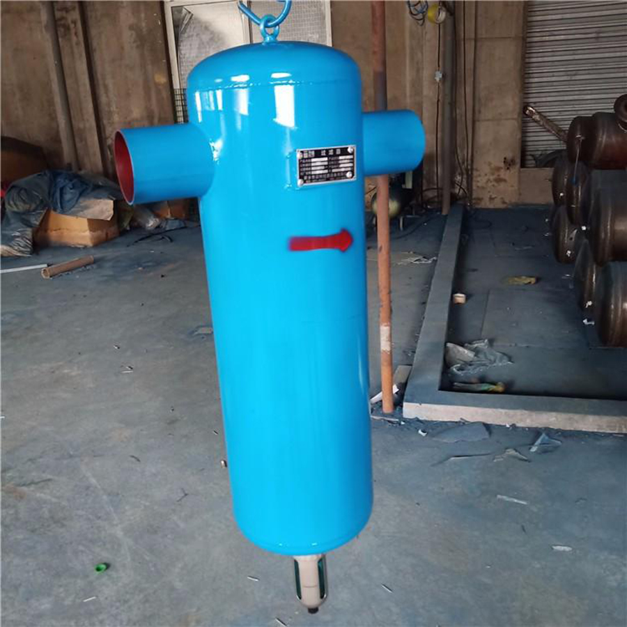 當(dāng)壓縮空氣或者蒸汽通過(guò)法蘭一側(cè)切向進(jìn)入分離器的入口,在分離器內(nèi)壁產(chǎn)生高速螺旋氣流,利用離心力將冷凝水和固體顆粒分離沉積到汽水分離器的底部,分離后的冷凝水通過(guò)蒸汽疏水閥或者排水器排出,而干燥壓縮空氣或者蒸汽從另一側(cè)法蘭進(jìn)入需要的管道當(dāng)中,整個(gè)汽水分離器本體是封閉結(jié)構(gòu),沒(méi)有更換元件,無(wú)須維護(hù)。汽水分離器所能夠隨的蒸汽或者壓縮空氣的流量由口徑、壓力、流速?zèng)Q定,
