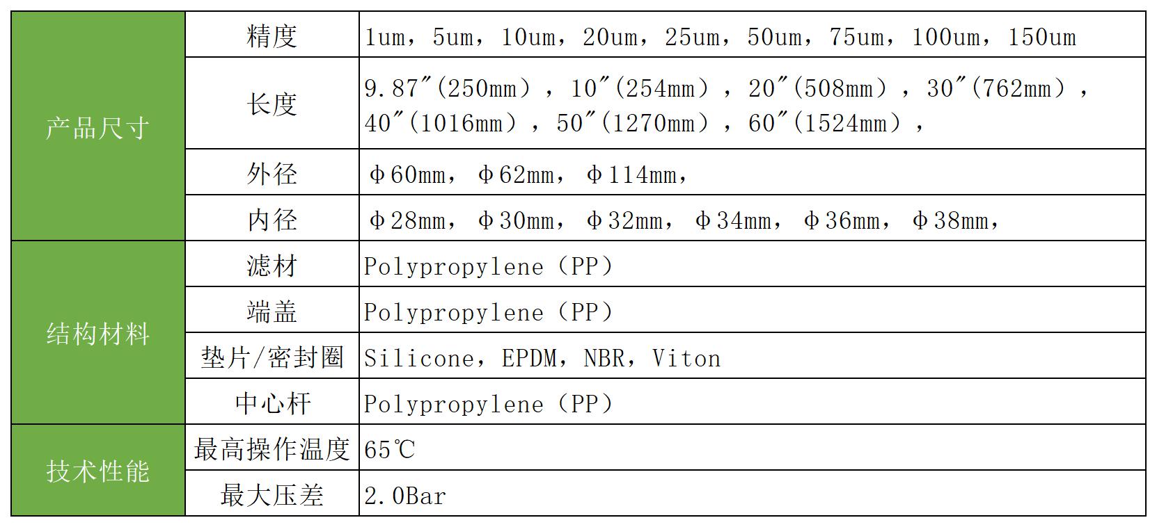 濾芯由聚丙烯超細(xì)纖維熱熔纏結(jié)制成,不適用任何化學(xué)粘合劑,纖維在空間隨機(jī)自粘合形成三維微孔結(jié)構(gòu),布集表面、深層、粗濾于一體,由于纖維和密度在濾芯的直徑方向形成高過濾