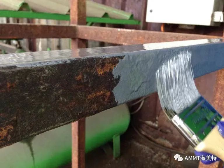 在工業(yè)界,傳統(tǒng)防銹、除銹的工序在過(guò)去 50 年都是一些非常沒(méi)有效率的方式,這些工序、步驟僅僅只能達(dá)到有限的效果;其主要的做法就是讓涂料“粘”在表面上,而無(wú)法讓已經(jīng)銹蝕的表面其銹蝕情況得到控制,因?yàn)殇P蝕的表面有無(wú)數(shù)的銹蝕孔,深入到表面以下;孔中仍有水汽或甚至于有霉菌,會(huì)讓銹蝕持續(xù)進(jìn)行。