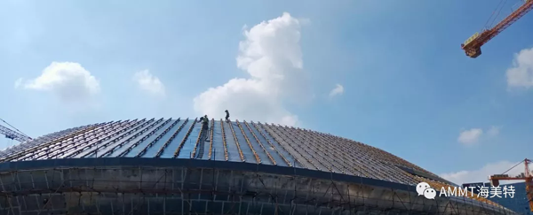 場(chǎng)館整體以“星際漩渦”為設(shè)計(jì)理念,總建筑面積約8萬(wàn)方,擁有座位4087個(gè),其中以設(shè)計(jì)聚脲作為防水的區(qū)域面積為1.5萬(wàn)平米。青島海洋新材料科技有限公司聚脲材料成為電競(jìng)館屋頂防水唯一指定聚脲材料。