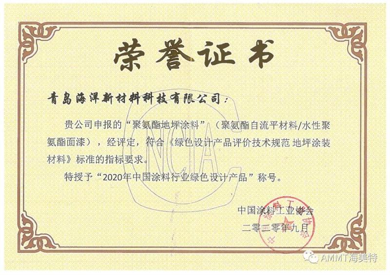 青島海洋新材料科技有限公司深耕聚脲聚氨酯行業(yè)多年,一直致力于研發(fā)生產(chǎn)全體系的綠色環(huán)保的產(chǎn)品。公司“聚氨酯地坪涂料”產(chǎn)品可以在此次評價中順利通過2020年中國涂料行業(yè)綠色產(chǎn)品的評價,是公司獲得政府支持與消費者信任,順利開展綠色營銷的重要保證。